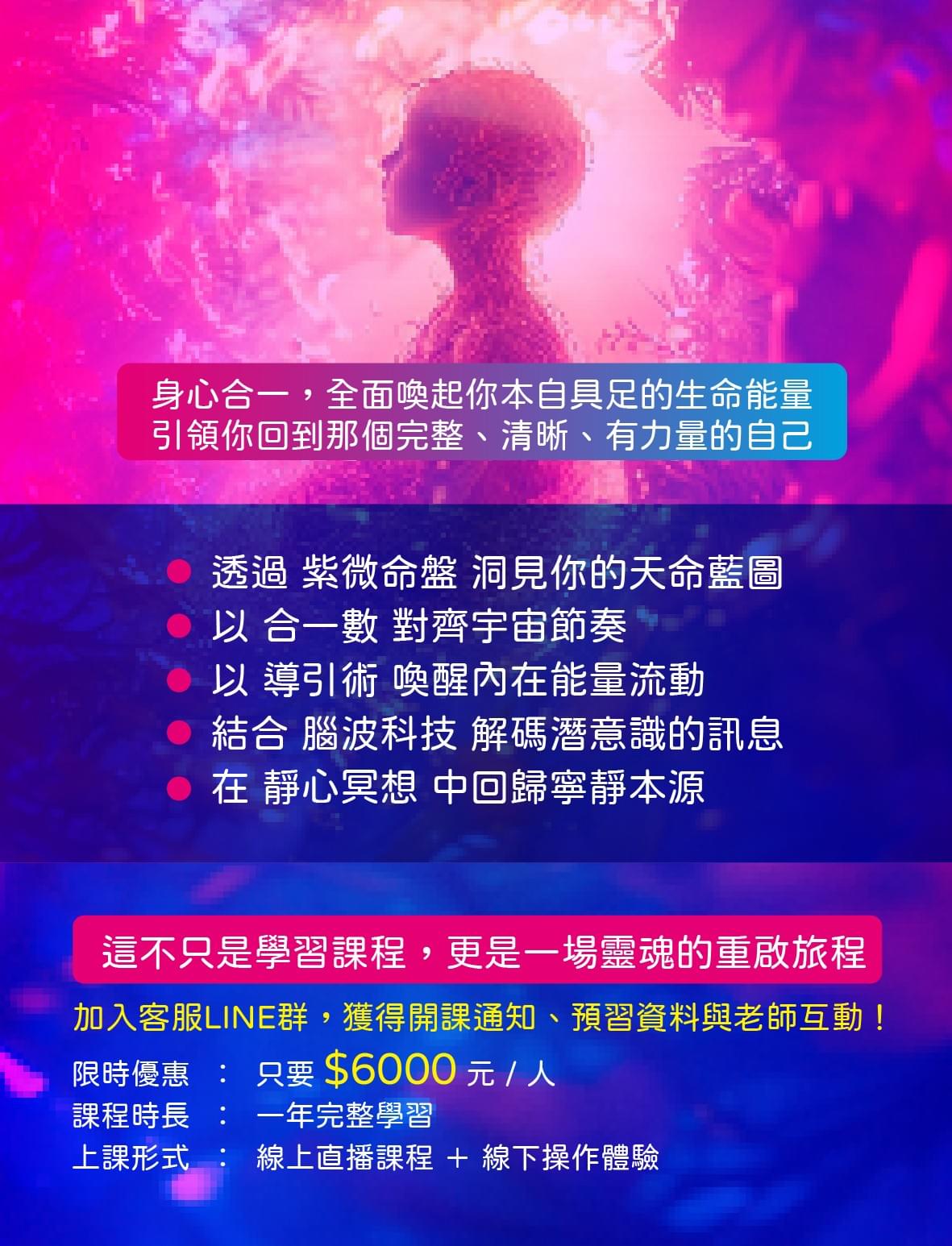 透過命盤、數字、能量、腦波、冥想,完整整合身心靈系統,引領你活出最清晰、有力量的自己